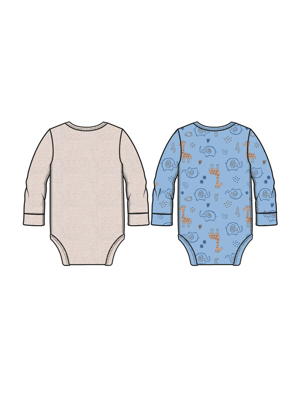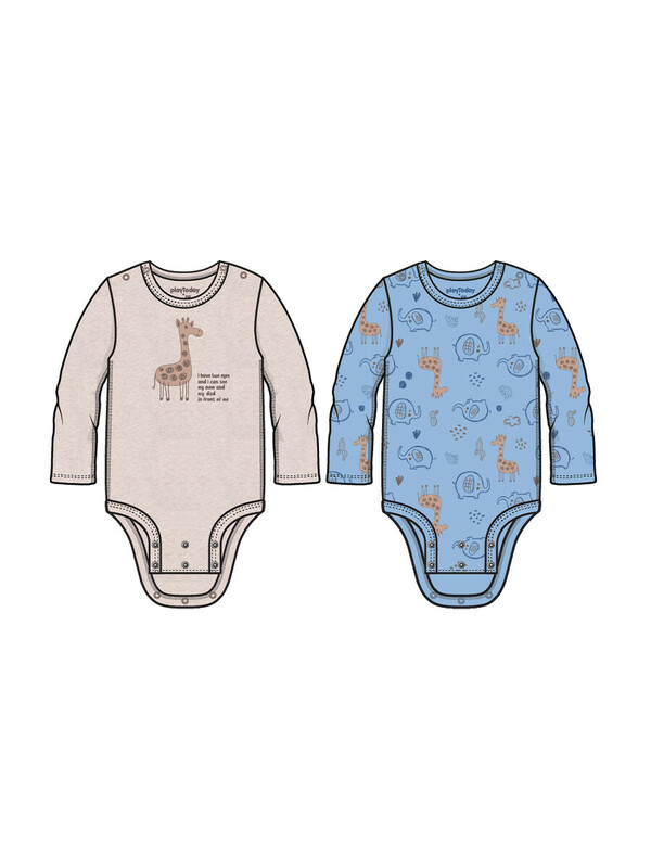 Боди с длинным рукавом из натурального хлопкового двойного трикотажа. 100% хлопок. Застежка на кнопки. 2 шт. в комплекте.