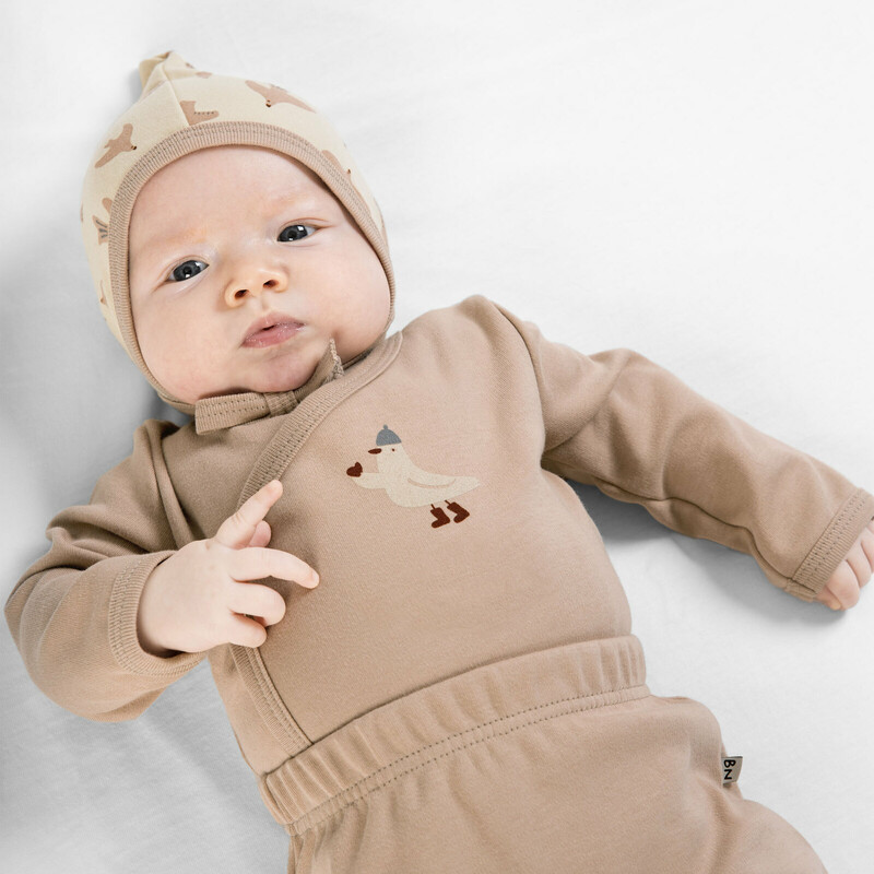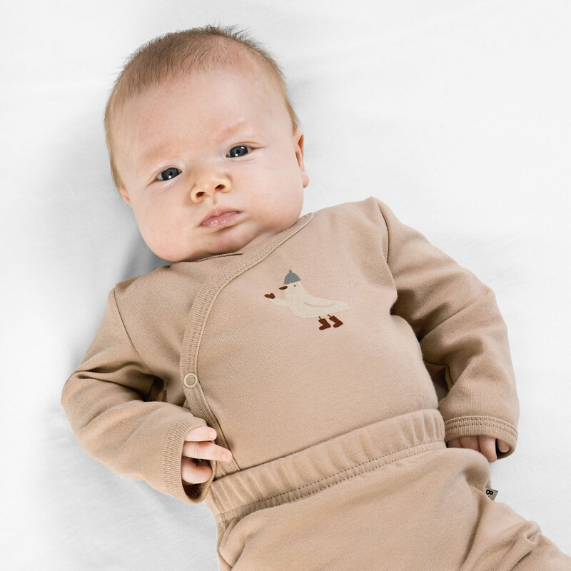 Боди с длинным рукавом Bossa Nova выполнен из интерлока. Детали: принт, модель на "запах", застёжка на кнопки сбоку и по низу изделия.