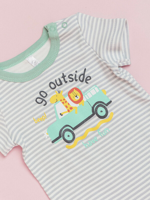 Боди с коротким рукавом batik с принтом в полоску и рисунком для мальчиков выполнен из 100% хлопка. Идеально подходит для новорожденных малышей и может использоваться с первых месяцев жизни. Боди оснащен застежками в виде кнопок на плечах и по низу.Характеристики:Ткань: Интерлок пенье 100% хлопокПроизводитель: batik