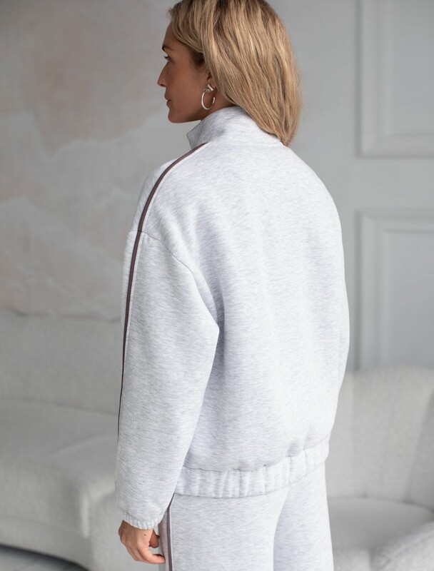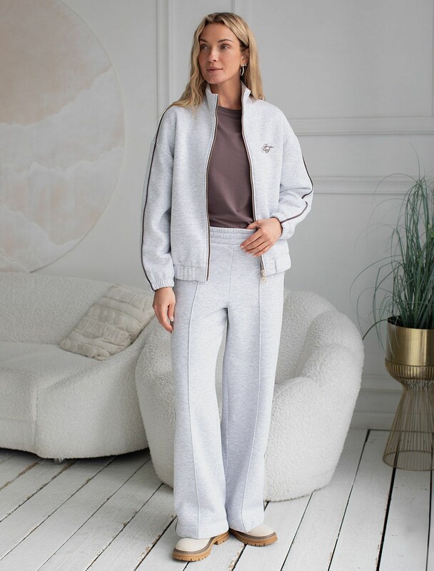 Уютный бомбер со спущенной линией плеча создан для комфорта в холодную погоду. Модель выполнена из премиального футера трехнитки с мягким начесом, что обеспечивает дополнительное тепло и приятные ощущения при носке. Элементы дизайна — минималистичная вышивка с логотипом бренда и тонкие онтрастные лампасы — делают бомбер более выразительным без перегруженности деталями, сохраняя эстетичность и современный вид. Эластичные манжеты на рукавах обеспечивают дополнительную защиту от продувания, способствуя сохранению тепла внутри. Натуральный хлопок гарантирует дышащий эффект, позволяя сохранять оптимальный микроклимат тела даже при длительном ношении. Благодаря эластану в составе повседневный бомбер подходит для активного отдыха, вы будете чувствовать себя свободно в любой ситуации. Сочетается в костюме с брюками D44.159