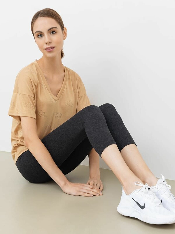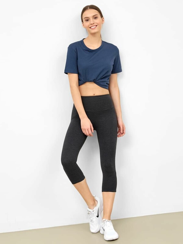Спортивные бриджи прилегающего силуэта. Длина ниже колен. Посадка высокая благодаря широкому эластичному поясу. Прочные швы совершенно не ощущаются кожей. В составе полотна – натуральный хлопок, а также немного полиэстера и эластана, которые делают бриджи более прочными. Отличный вариант для спорта, отдыха и домашних дел!