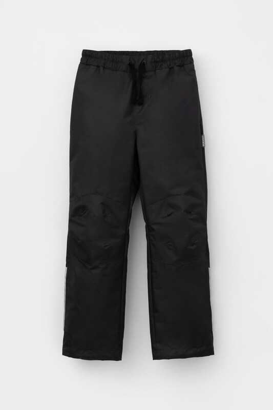 Ветровочные брюки из мембранной, фактурной ткани с дополнительной тефлоновой обработкой. Данный вид обработки предохраняет изделие от загрязнения и лучше отводит влагу. Подклад из 100% хлопка. Область коленей дополнительно усилена деталями из основной ткани. В поясе предусмотрен шнурок для регулировки ширины изделия. Во всех изделиях верхнего ассортимента для безопасности ребенка предусмотрены светоотражающие элементы.