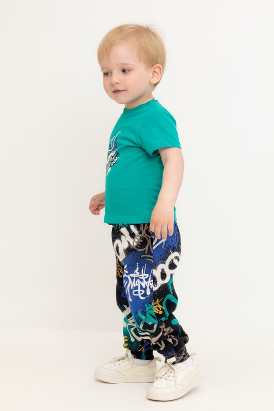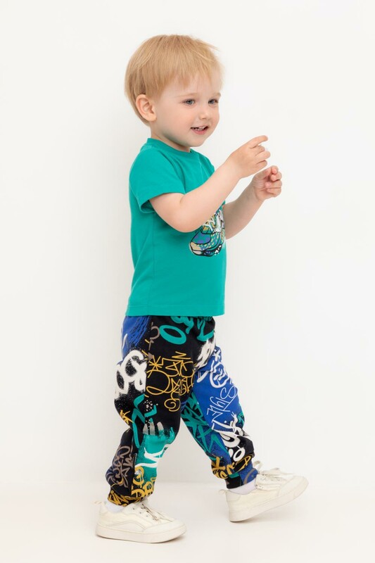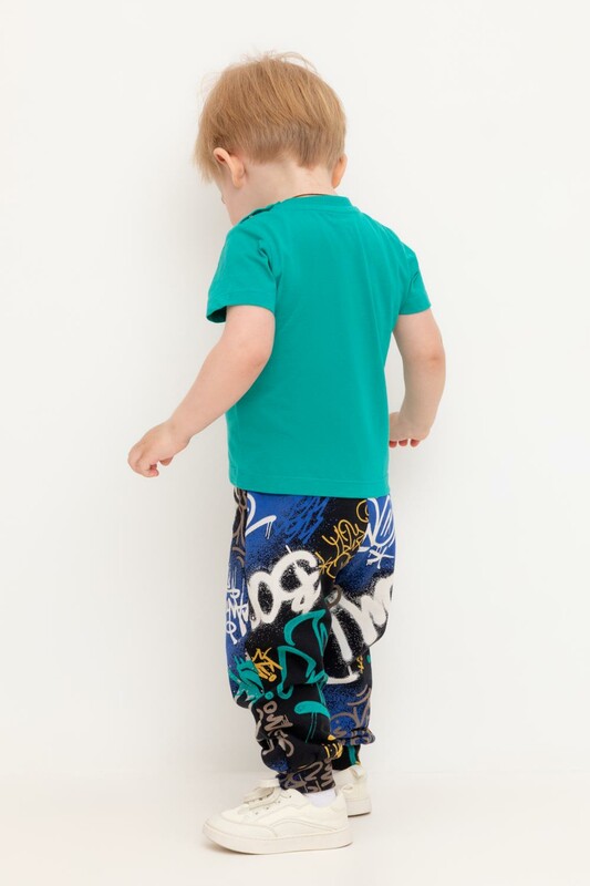 Свободные брюки для мальчика из футера с начесом. Эластичный пояс на резинке регулируется по ширине с помощью шнурка, внизу эластичные манжеты.