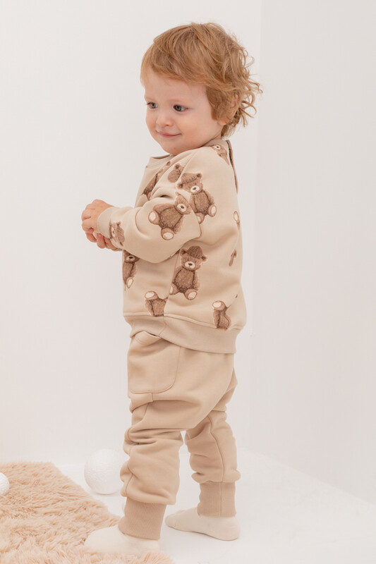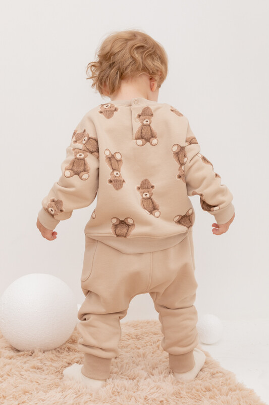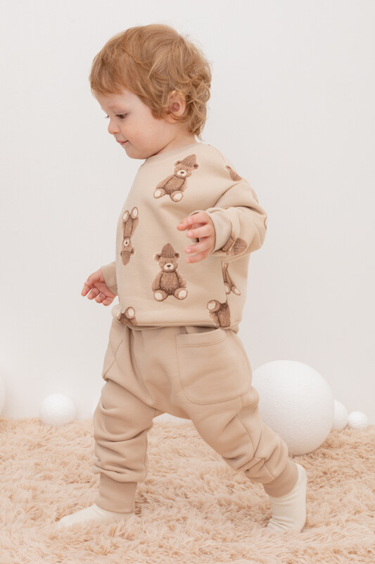 Трикотажные брюки для мальчика из футера с начёсом. В составе 80% натурального хлопка и 20% полиэстера, при этом полиэстер ввязан внутрь по особой технологии и не соприкасается с кожей. Эластичный пояс на резинке регулируется по ширине с помощью шнурка, по бокам два удобных накладных кармана, внизу эластичные манжеты.