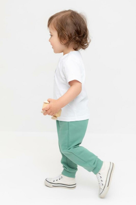 Брюки для мальчика из высококачественного трикотажного полотна футер петля. Пояс на резинке регулируется по ширине с помощью шнурка. Внизу эластичные манжеты.