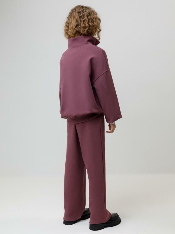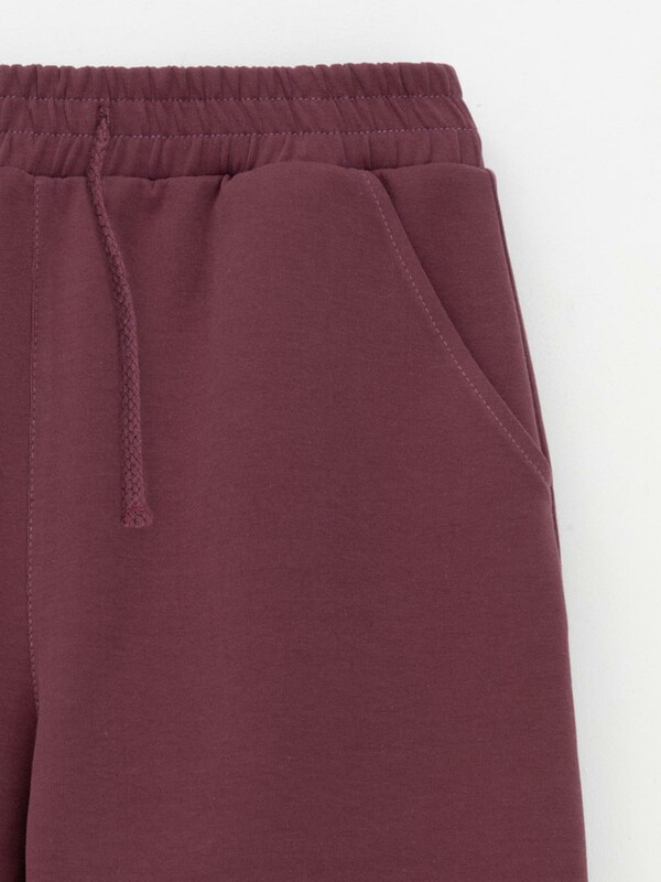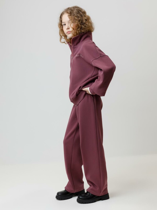 Прямые брюки для девочки. Изготовлены из премиального трикотажного полотна DOUBLE FACE. Эластичный пояс регулируется по ширине с помощью шнурка. По бокам два удобных кармана. Изделие сохраняет цвет и форму после многократных стирок. Все трикотажные полотна производятся в соответствии с нормами швейцарского сертификата ЭкоТекс.