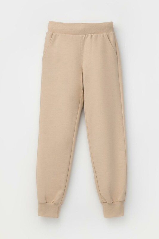 рикотажные брюки для девочки из петельчатого футера. Эластичный пояс на резинке , по бокам два удобных кармана, внизу эластичные манжеты.