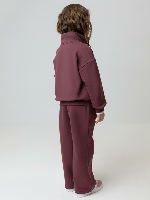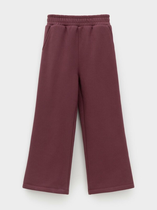 Прямые брюки с эластичным поясом для девочки. Изготовлены из мягкого трикотажа с начёсом. По бокам два удобных кармана. Изделие сохраняет цвет и форму после многократных стирок. Все трикотажные полотна производятся в соответствии с нормами швейцарского сертификата ЭкоТекс.