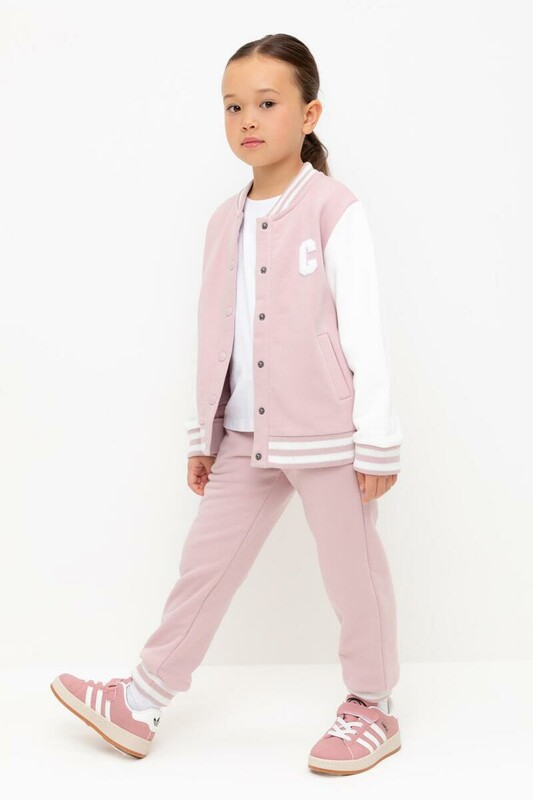 Брюки для девочки из мягкого петельчатого трикотажа. В составе 80% натурального хлопка и 20% полиэстера, при этом полиэстер ввязан внутрь по особой технологии и не соприкасается с кожей. Эластичный пояс на резинке регулируется по ширине с помощью шнурка, по бокам два удобных кармана, внизу эластичные манжеты.
