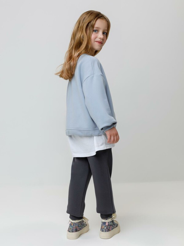 Брюки для девочки из мягкого петельчатого футера. В составе 80% натурального хлопка и 20% полиэстера, при этом полиэстер ввязан внутрь по особой технологии и не соприкасается с кожей. Модель с эластичным поясом на резинке регулируется по ширине с помощью шнурка. Низ на манжетах. Два кармана по бокам. Все трикотажные полотна производятся в соответствии с нормами швейцарского сертификата ЭкоТекс.