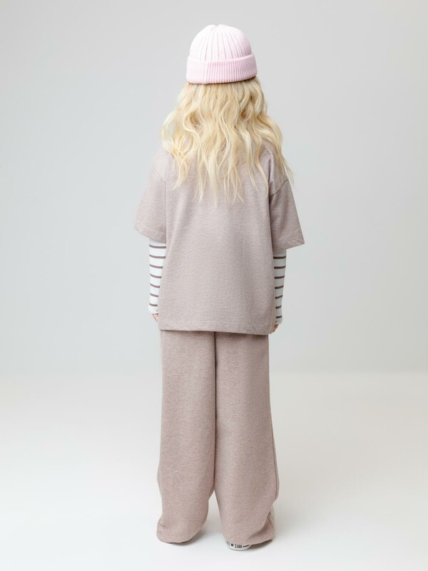 Прямые брюки с эластичным поясом для девочки. Изготовлены из мягкого петельчатого трикотажа. По бокам два удобных кармана. Изделие сохраняет цвет и форму после многократных стирок. Все трикотажные полотна производятся в соответствии с нормами швейцарского сертификата ЭкоТекс.