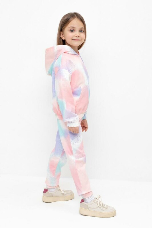Трикотажные брюки для девочки из мягкого петельчатого футера. Эластичный пояс на резинке, по бокам два удобных кармана, внизу эластичные манжеты.