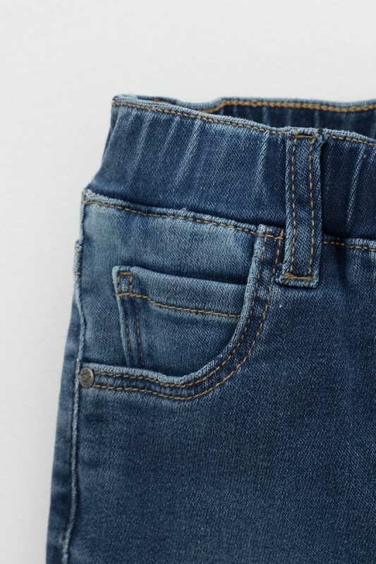 Джинсы для девочки на резинке с отворотами и потертостями. Сзади и по бокам карманы. Пояс на резинке с закрепами для ремешка. Спереди имитация гульфика.