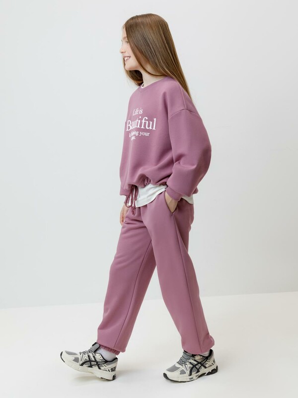 Брюки для девочки из мягкого петельчатого трикотажа.В составе 80% натурального хлопка и 20% полиэстера, при этом полиэстер ввязан внутрь по особой технологии и не соприкасается с кожей. Эластичный пояс на резинке регулируется по ширине с помощью шнурка. Внизу эластичные манжеты. По бокам два удобных кармана. Изделие сохраняет цвет и форму после многократных стирок. Все трикотажные полотна производятся в соответствии с нормами швейцарского сертификата ЭкоТекс.