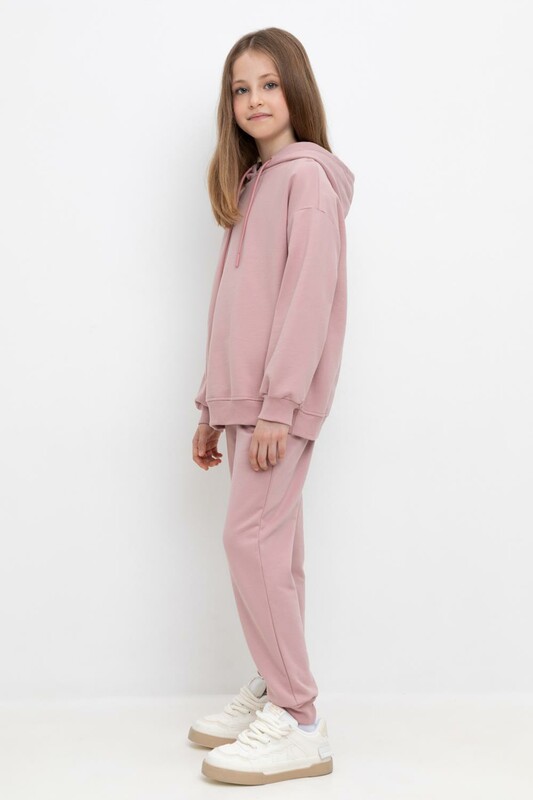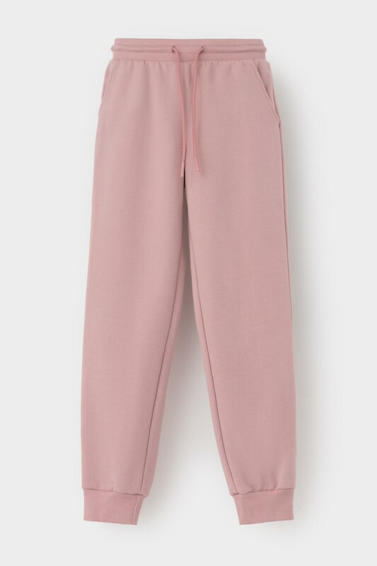 Трикотажные брюки для девочки из футера трехнитки с начесом. Эластичный пояс на резинке регулируется по ширине с помощью шнурка, внизу манжеты из эластичного кашкорсе.