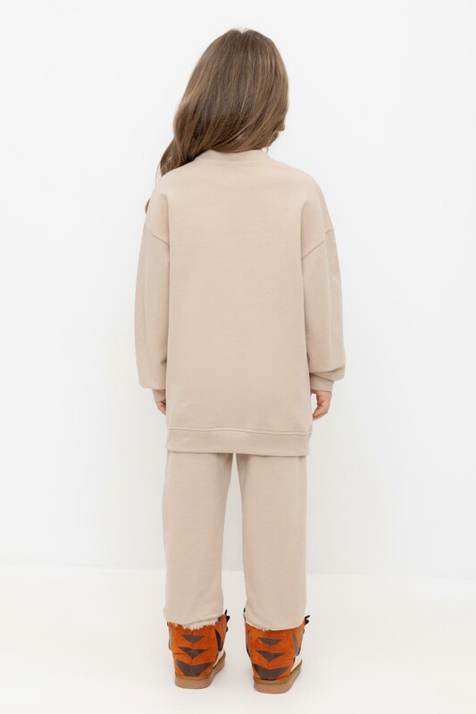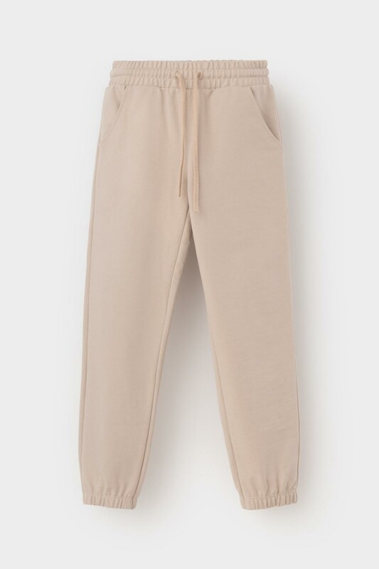 Трикотажные брюки для девочки из петельчатого футера трехнитки. Эластичный пояс на резинке регулируется по ширине с помощью шнурка, внизу манжеты на резинке.