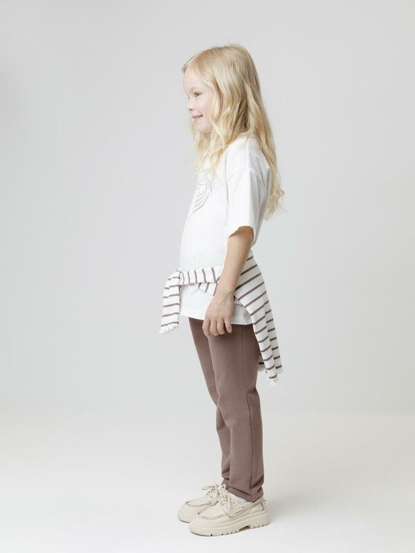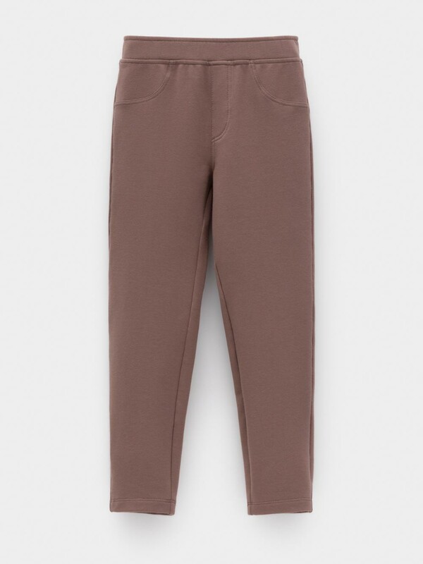 Брюки с имитацией карманов и гульфика для девочки. Изготовлены из мягкого эластичного футера. Пояс на резинке. Изделие сохраняет форму и стойкий цвет после многочисленных стирок и идеально подходит на каждый день. Все трикотажные полотна производятся в соответствии с нормами швейцарского сертификата ЭкоТекс.
