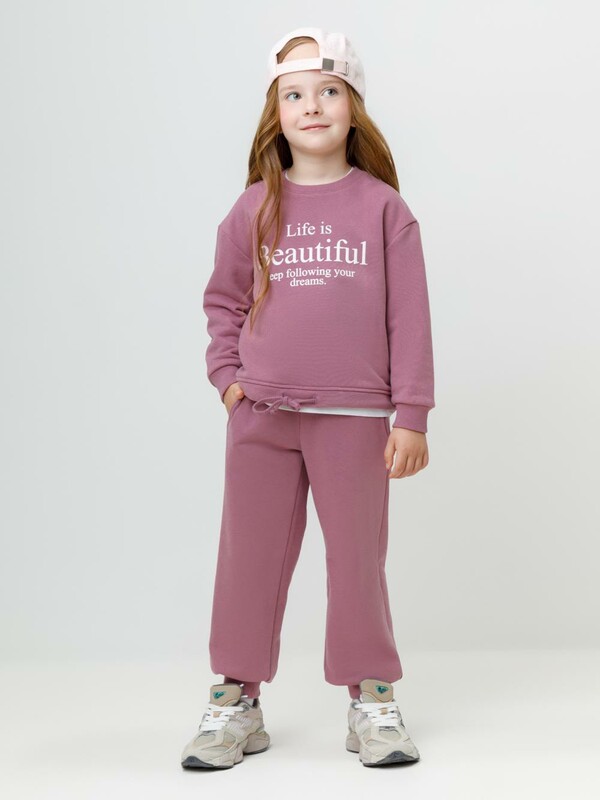 Брюки для девочки из мягкого петельчатого трикотажа. Эластичный пояс на резинке регулируется по ширине с помощью шнурка. Внизу эластичные манжеты. По бокам два удобных кармана. Изделие сохраняет цвет и форму после многократных стирок. Все трикотажные полотна производятся в соответствии с нормами швейцарского сертификата ЭкоТекс.
