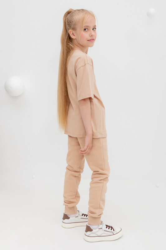 Трикотажные брюки для девочки из футера с начёсом. В составе 80% натурального хлопка и 20% полиэстера, при этом полиэстер ввязан внутрь по особой технологии и не соприкасается с кожей. Эластичный пояс на резинке, по бокам два удобных кармана, внизу эластичные манжеты.