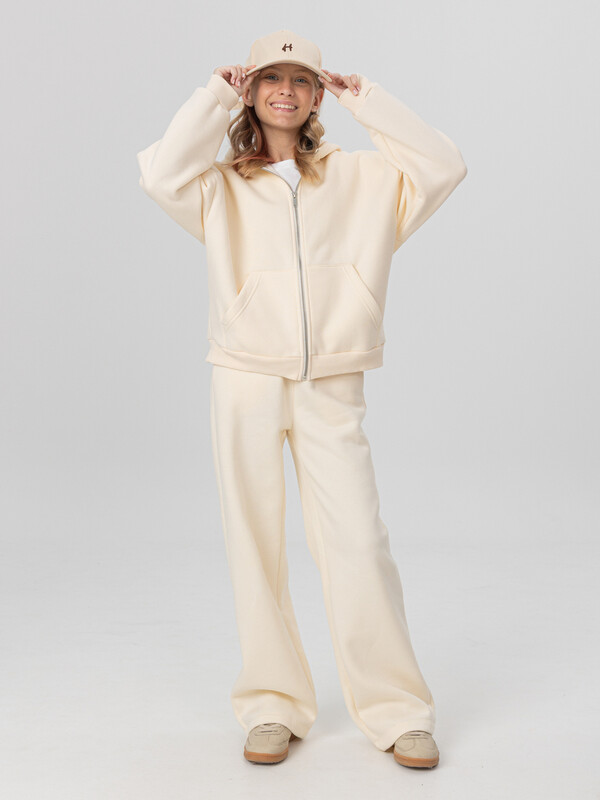 Брюки для девочек прямого силуэта, выполненные из футера. Этот материал отличается своей прочностью и долговечностью, обеспечивая комфорт и стиль в повседневной носке. Кроме того, футер хорошо сохраняет тепло и обладает приятной мягкостью, делая брюки идеальными для прохладной погоды. Эти брюки прекрасно подходят для любых случаев, от школы до прогулок и игр.