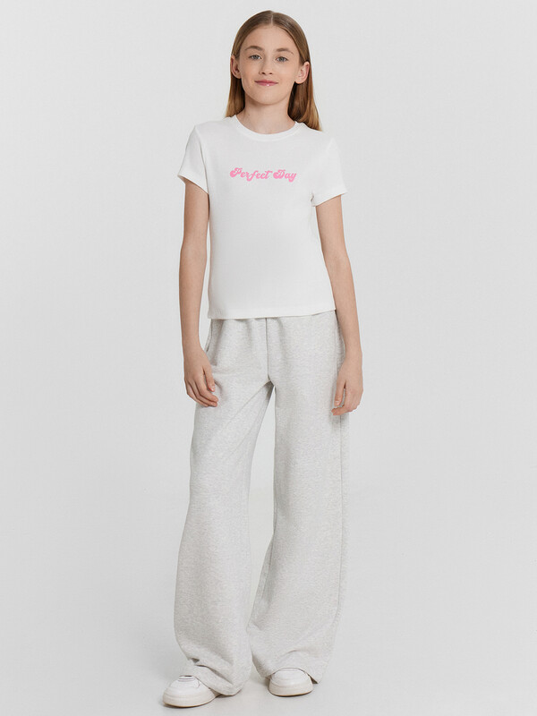 Спортивные брюки для девочек – это отличное сочетание стиля и комфорта. Модель прямого силуэта обеспечивает свободу движений, идеально подходя для активных занятий и повседневного ношения. Эластичный пояс гарантирует удобную посадку, а боковые карманы добавляют функциональности. Модель, выполненная из футера без подчеса, мягкая и приятная на ощупь, что делает ее идеальным выбором для любого времени года. Эти брюки легко сочетаются с различной спортивной и повседневной одеждой, создавая стильные и удобные образы.