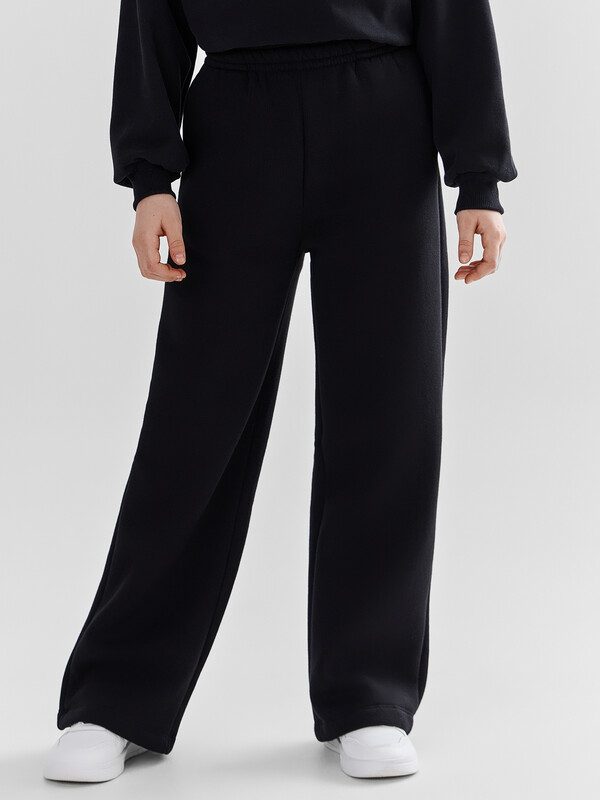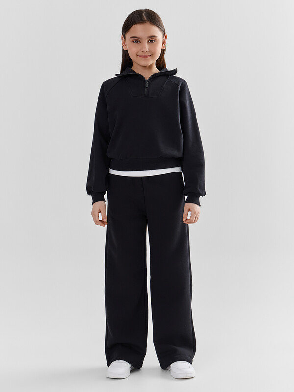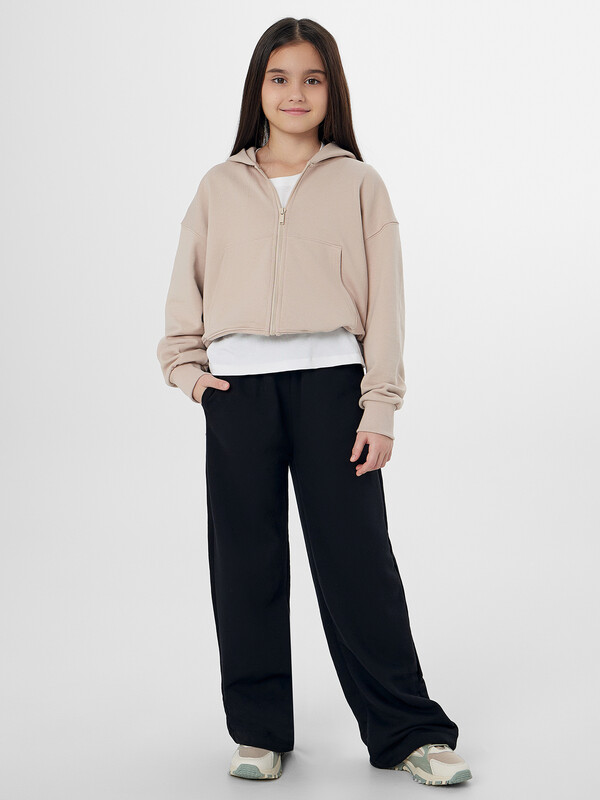 Брюки для девочек прямого силуэта, выполненные из футера. Этот материал отличается своей прочностью и долговечностью, обеспечивая комфорт и стиль в повседневной носке. Кроме того, футер хорошо сохраняет тепло и обладает приятной мягкостью, делая брюки идеальными для прохладной погоды. Эти брюки прекрасно подходят для любых случаев, от школы до прогулок и игр.
