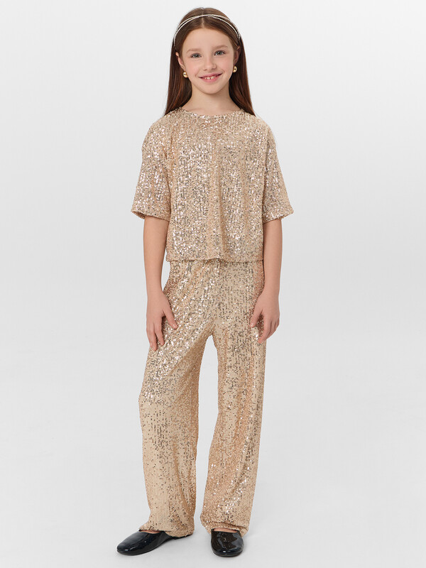 Брюки с пайетками для девочек станут ярким акцентом в образах, когда нужно выглядеть особенно. Эта модель свободного силуэта идеально подойдет для создания эффектных и стильных нарядов. Изделие выполнено в два слоя: нижний слой из нежной кулирки, обеспечивающей мягкость и комфорт при носке, и верхний слой из сетки, расшитой мерцающими пайетками, которые добавляют блеска и волшебства. Эти брюки создадут незабываемый образ и подарят ощущение праздника в каждой детали!