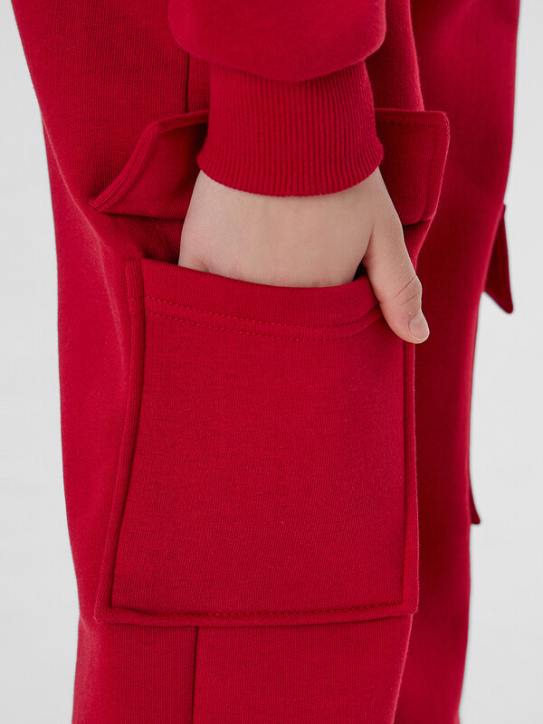 Брюки карго свободного силуэта из трикотажного полотна футер. Пояс отрезной с эластичной тесьмой внутри 50RV, по поясу проложены отделочные строчки, внутри пробиты петли и втянут шнур 8-PXC2. По переду карманы с отрезным бочком, с подкаладкой из трикотажного кулирного полотна. По боковым швам накладные карманы с клапаном.