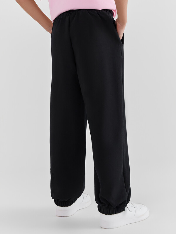Брюки свободного силуэта с высокой посадкой. Пояс отрезной с эластичной тесьмой внутри.