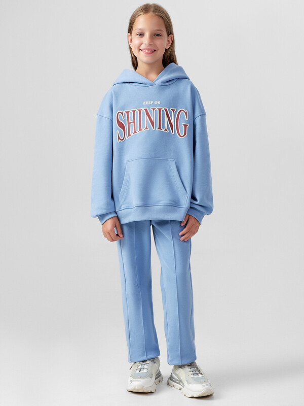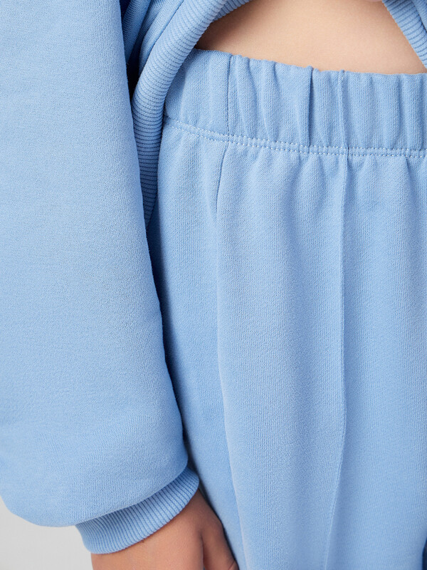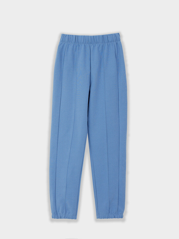 Брюки для девочек. Посадка на талии. Пояс цельнокроеный , внутрь застрочена эластичная тесьма 40RV. Боковые швы перенесены на перед. Низ изделия обработан швом в подгибку, внутрь застрочена эластичная тесьма.