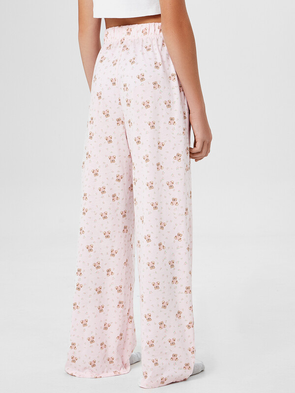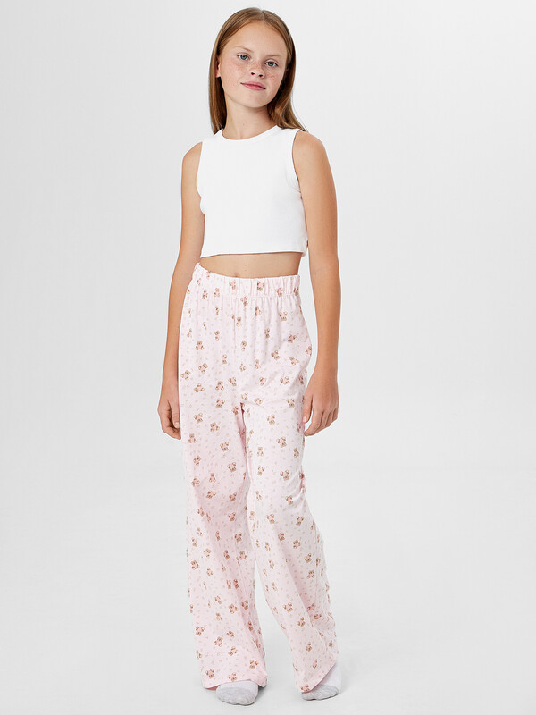 Брюки домашние слегка расширены к низу. Пояс цельнокроеный с эластичной тесьмой внутри (Rv40), ширина 40 мм.