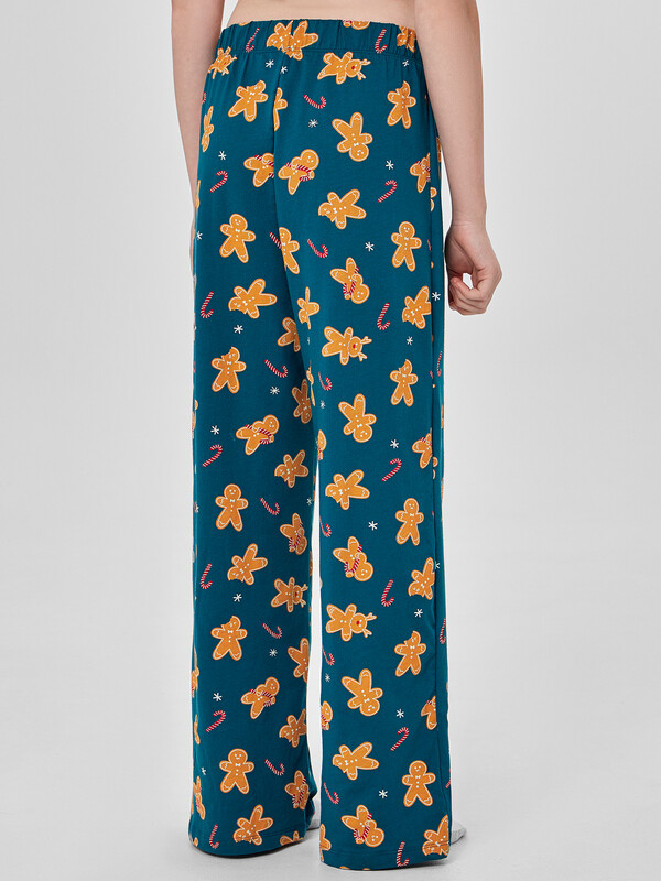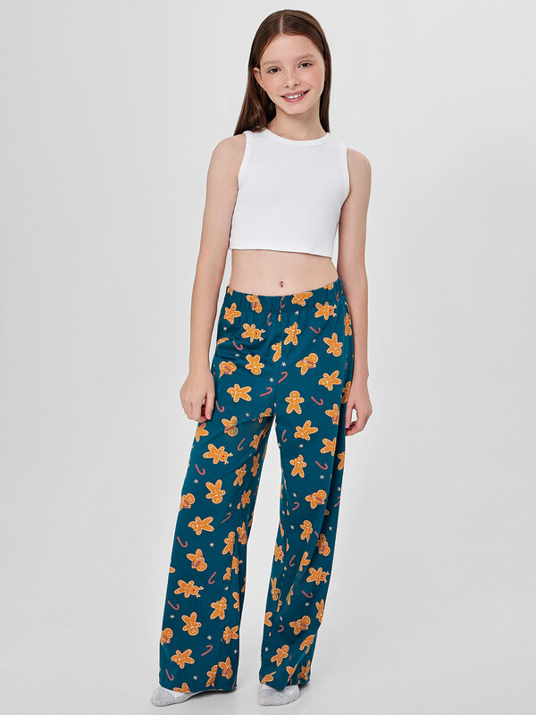 Брюки домашние слегка расширены к низу. Пояс цельнокроеный с эластичной тесьмой внутри (Rv40), ширина 40 мм.