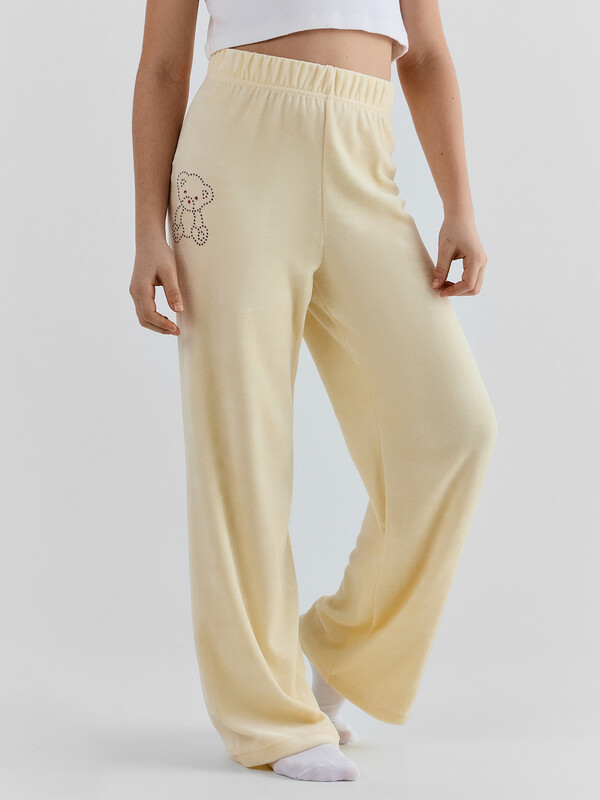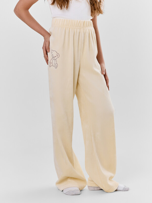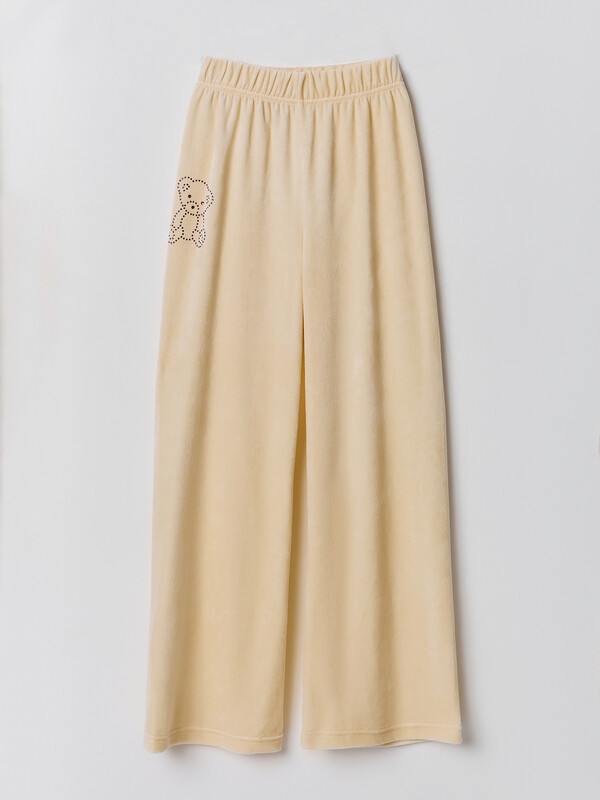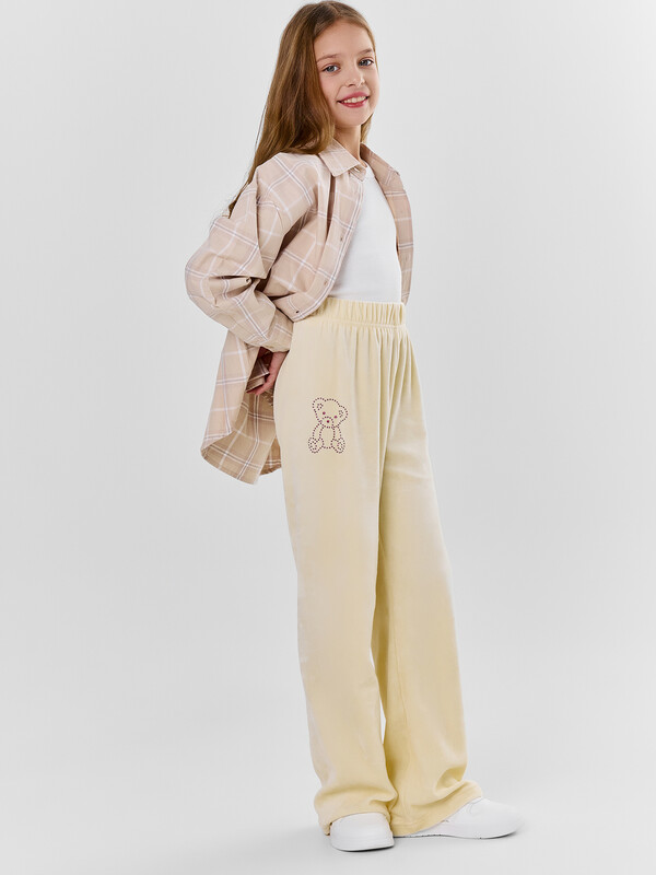 Брюки домашние для девочек свободного силуэта, длинные. Пояс цельнокроеный с эластичной тесьмой внутри (внутрення резина Rv40), ширина 40 мм.