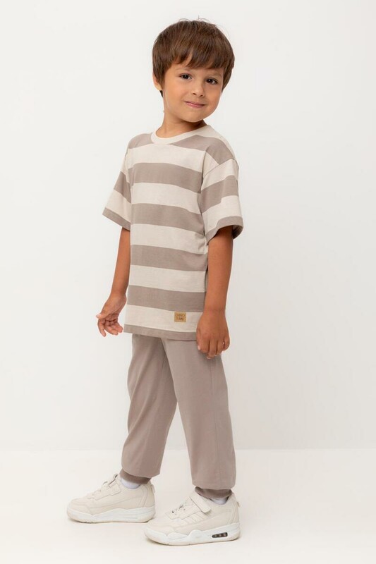 Брюки для мальчика из высококачественного трикотажного полотна. Пояс на резинке регулируется по ширине с помощью шнурка. По бокам два удобных кармана. Внизу эластичные манжеты.