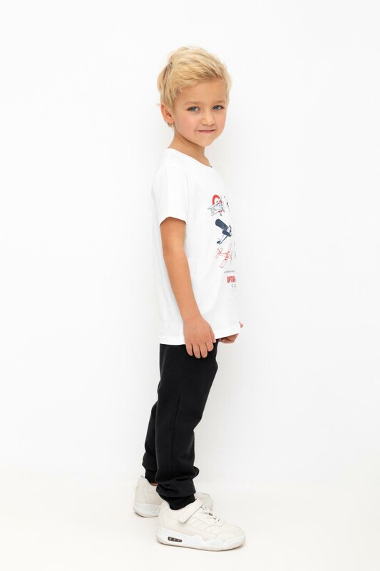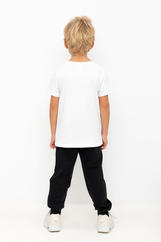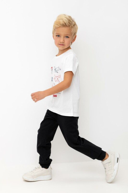 Трикотажные брюки для мальчика из петельчатого футера. Эластичный пояс на резинке регулируется по ширине с помощью шнурка, по бокам два удобных кармана, внизу эластичные манжеты.
