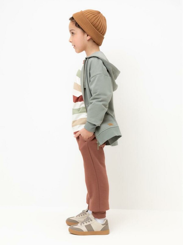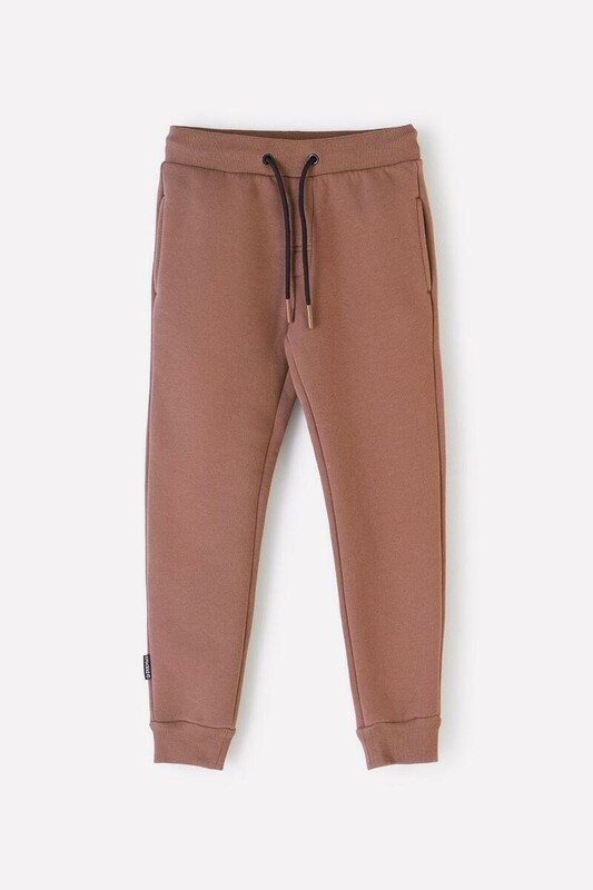 Однотонные брюки для мальчика из футера трехнитки с начесом. Эластичный пояс регулируется по ширине с помощью шнурка. У изделия эластичные манжеты и два кармана по бокам. Брюки сохраняют цвет и форму после многократных стирок.
