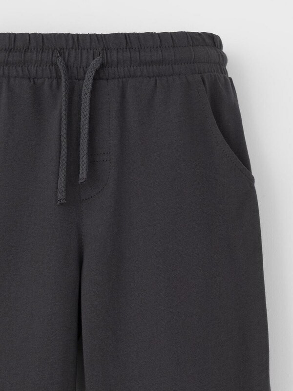 Брюки для мальчика из высококачественного трикотажного полотна. Пояс на резинке регулируется по ширине с помощью шнурка. По бокам два удобных кармана. Внизу эластичные манжеты.