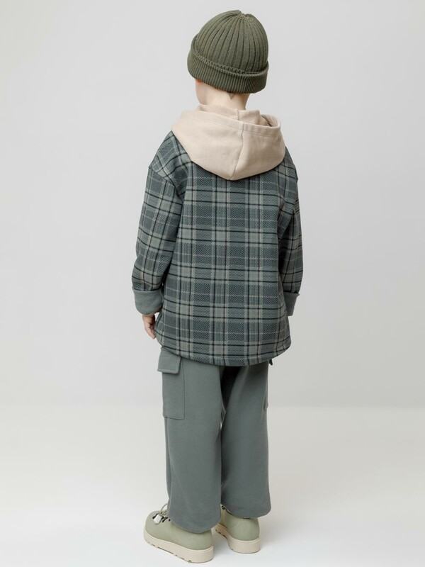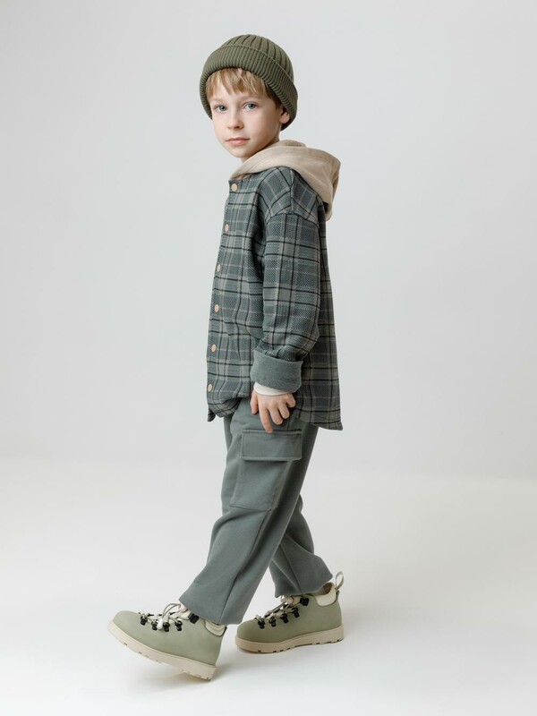 Брюки для мальчика из мягкого петельчатого футера трёхнитки. В составе 80% натурального хлопка и 20% полиэстера, при этом полиэстер ввязан внутрь по особой технологии и не соприкасается с кожей. Модель с эластичным поясом на резинке и утягивающим шнурком для регулировки по талии. По бокам четыре кармана. Низ на манжетах. Изделие сохраняет цвет и форму после многократных стирок. Все трикотажные полотна производятся в соответствии с нормами швейцарского сертификата ЭкоТекс.