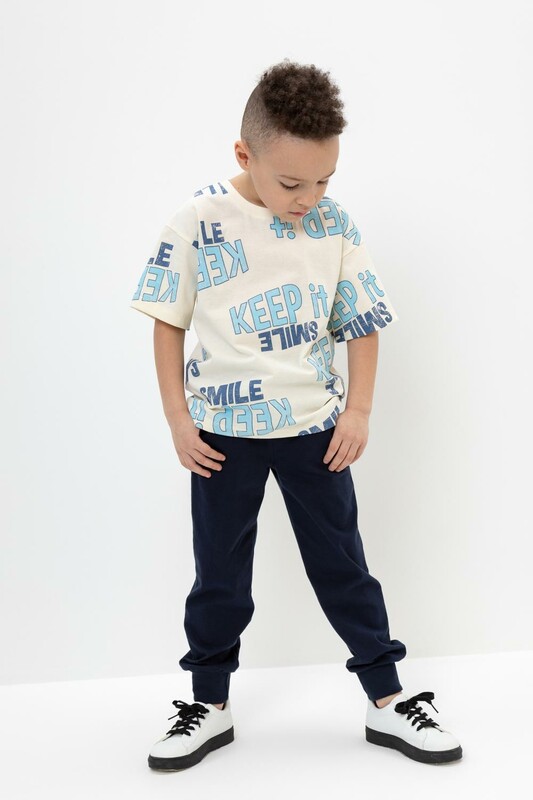 Трикотажные брюки для мальчика из высококачественного трикотажного полотна супрем. Эластичный пояс на резинке регулируется по ширине с помощью шнурка, по бокам два удобных кармана, внизу эластичные манжеты.