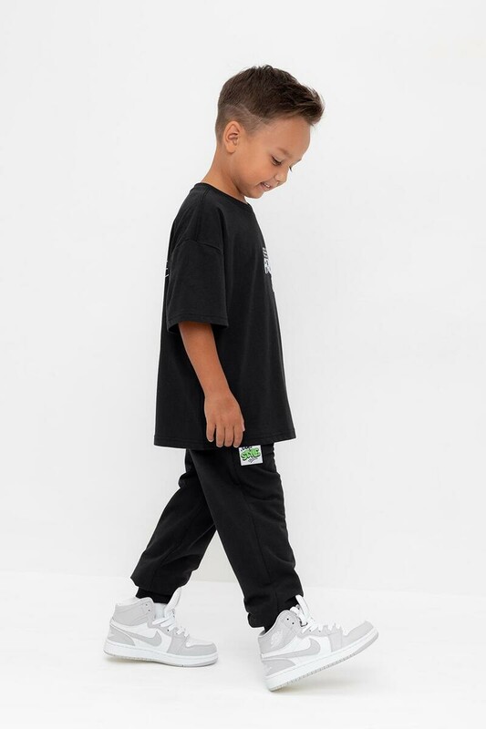 Объёмные брюки для мальчика из мягкого петельчатого трикотажа. Эластичный пояс на резинке регулируется по ширине с помощью шнурка, по бокам два удобных кармана, внизу эластичные манжеты.