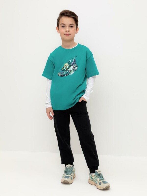 Трикотажные брюки для мальчика из мягкого футера с начесом. В составе 80% натурального хлопка и 20% полиэстера, при этом полиэстер ввязан внутрь по особой технологии и не соприкасается с кожей. Эластичный пояс на резинке регулируется по ширине с помощью шнурка, внизу эластичные манжеты.