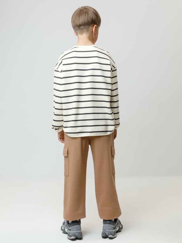 Брюки для мальчика из мягкого петельчатого футера трёхнитки. В составе 80% натурального хлопка и 20% полиэстера, при этом полиэстер ввязан внутрь по особой технологии и не соприкасается с кожей. Модель с эластичным поясом на резинке и утягивающим шнурком для регулировки по талии. По бокам четыре удобных кармана. Низ на манжетах. Изделие сохраняет цвет и форму после многократных стирок. Все трикотажные полотна производятся в соответствии с нормами швейцарского сертификата ЭкоТекс.