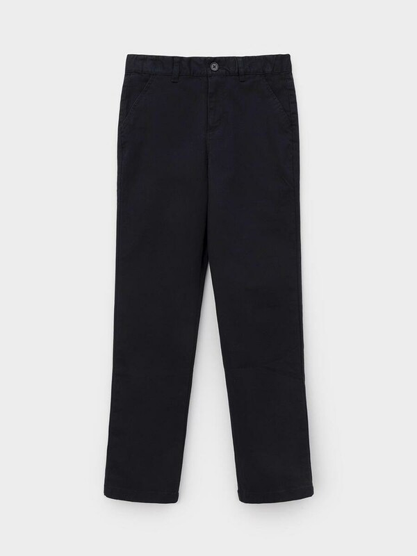 Брюки чинос для мальчика из высококачественного хлопка. Пояс застегивается на пуговицу и регулируется по ширине с помощью эластичной резинки с изнаночной стороны. По бокам два удобных кармана. По низу изделия подвороты с закрепками.