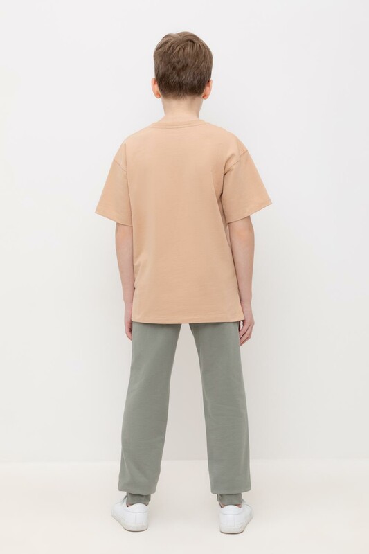 Трикотажные брюки для мальчика из петельчатого футера. Эластичный пояс на резинке регулируется по ширине с помощью шнурка, по бокам два удобных кармана, внизу эластичные манжеты.