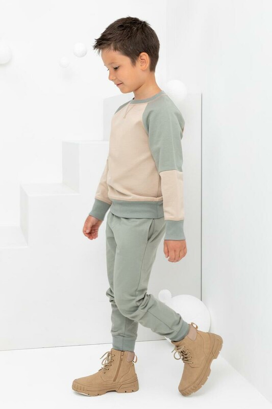 Трикотажные брюки для мальчика из петельчатого футера. В составе 80% натурального хлопка и 20% полиэстера, при этом полиэстер ввязан внутрь по особой технологии и не соприкасается с кожей. Эластичный пояс на резинке регулируется по ширине с помощью шнурка, по бокам два удобных кармана, внизу эластичные манжеты.