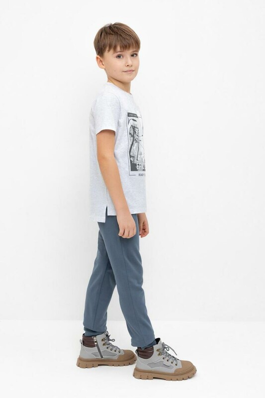 Трикотажные брюки для мальчика из петельчатого футера. Эластичный пояс на резинке регулируется по ширине с помощью шнурка, по бокам два удобных кармана, внизу эластичные манжеты.