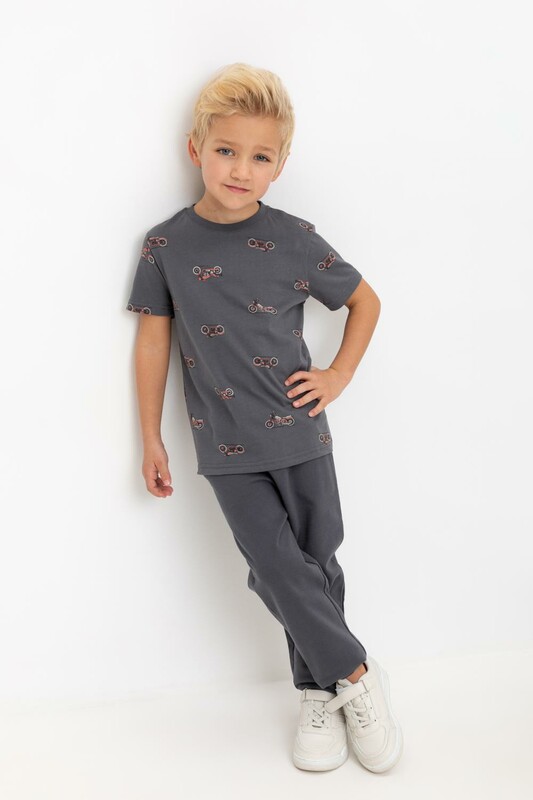 Трикотажные брюки для мальчика из петельчатого футера. Эластичный пояс на резинке регулируется по ширине с помощью шнурка, по бокам два удобных кармана, внизу эластичные манжеты.