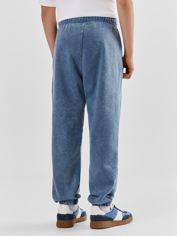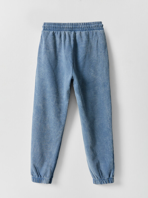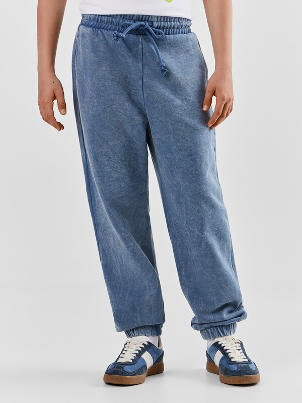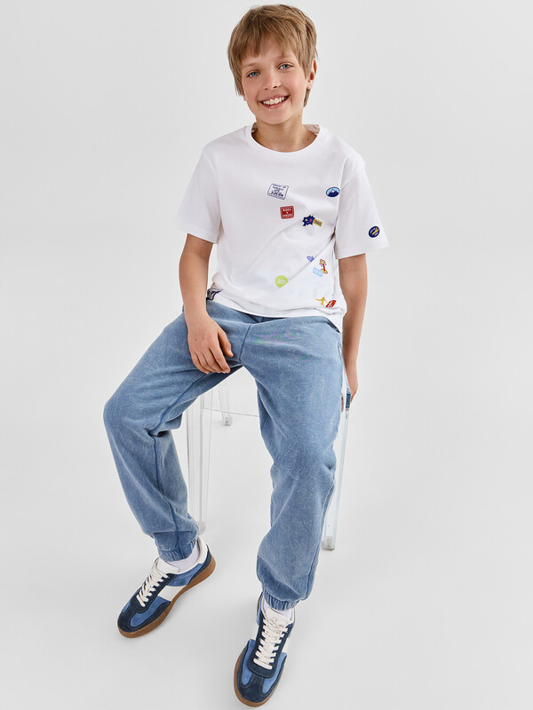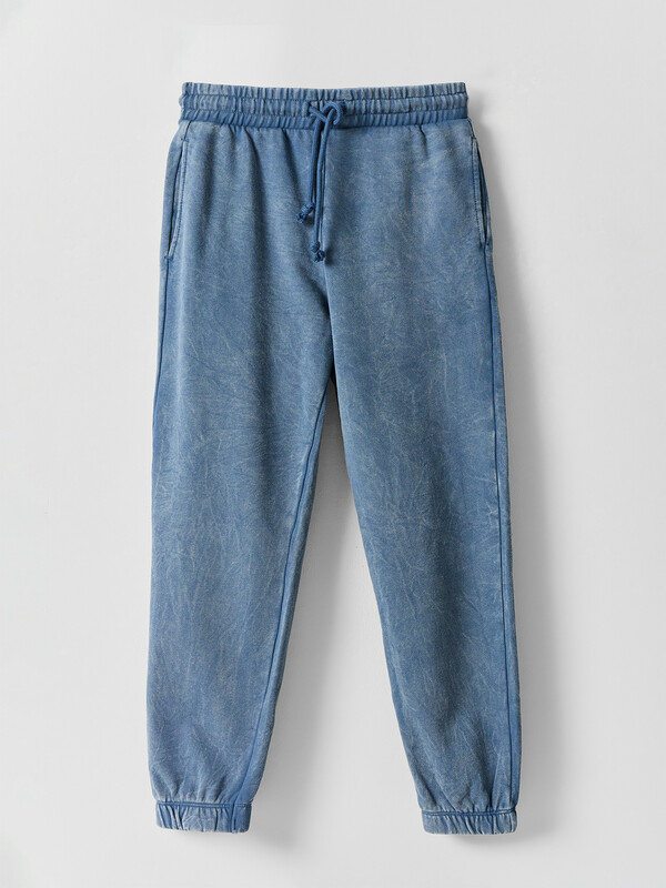Брюки изготовлены из трикотажного полотна футер. Брюки свободного силуэта. Сиденье немного спущено. В боковых швах обработаны карманы. Подкладка карманов из кулирки.