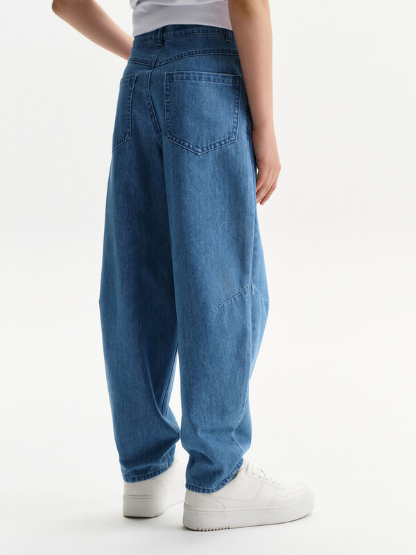 Джинсы Багги из плотного денима.Пояс застежкой на пуговицу и петлю.Джинсы с функциональным гульфиком,