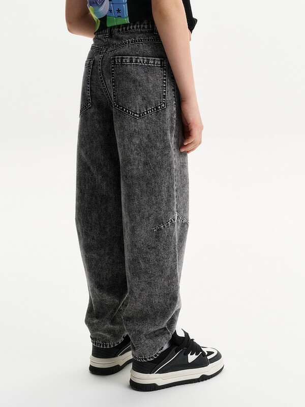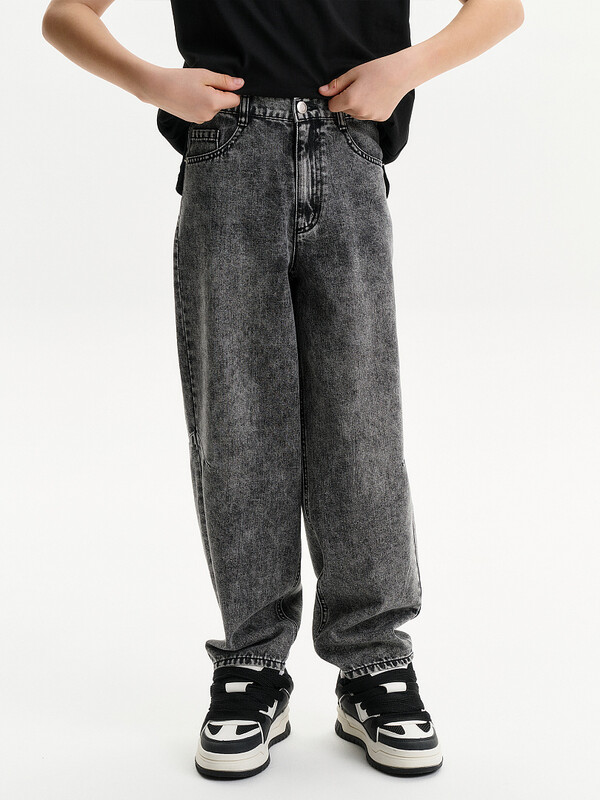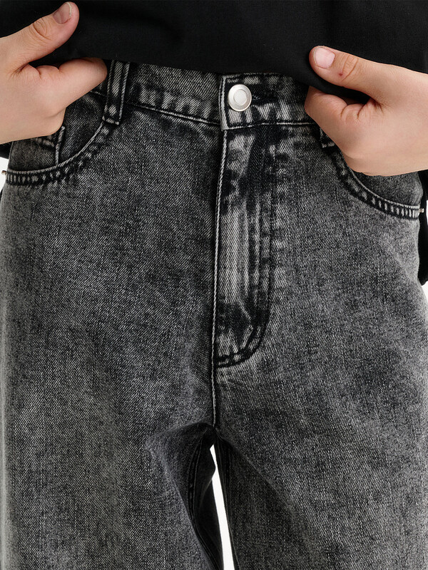 Джинсы Багги из плотного денима.Пояс застежкой на пуговицу и петлю.Джинсы с функциональным гульфиком,